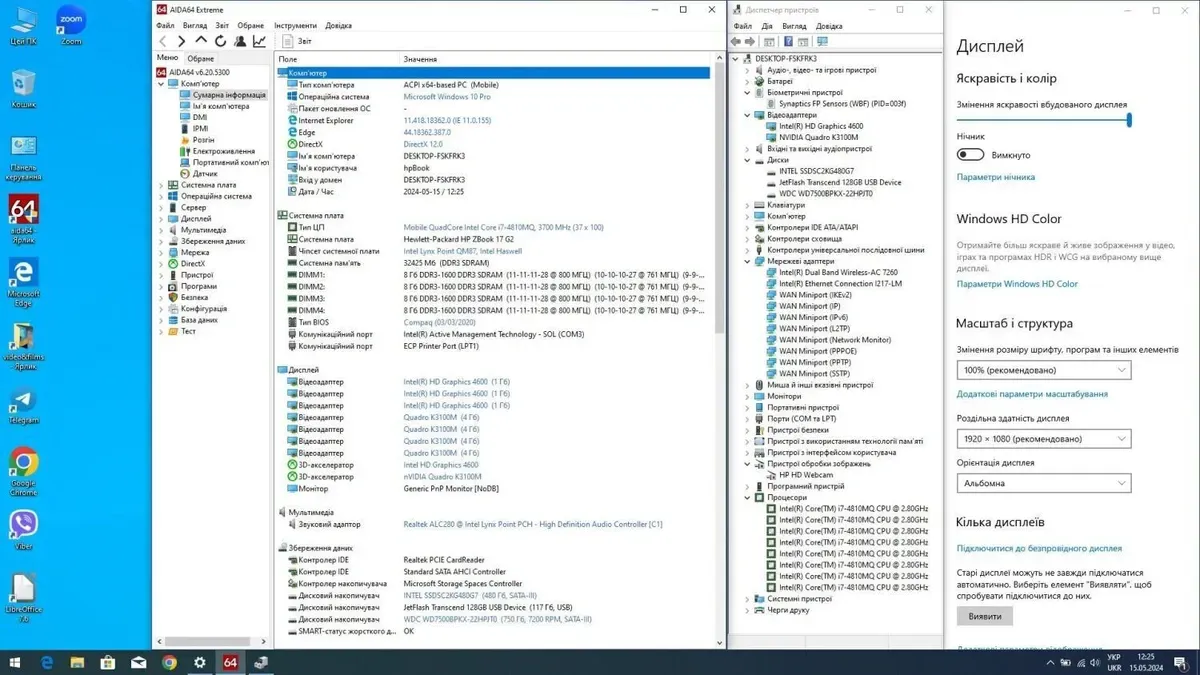 - Графіка: дискретна nVidia Quadro K3100M, 4 GB GDDR5, 256-bit