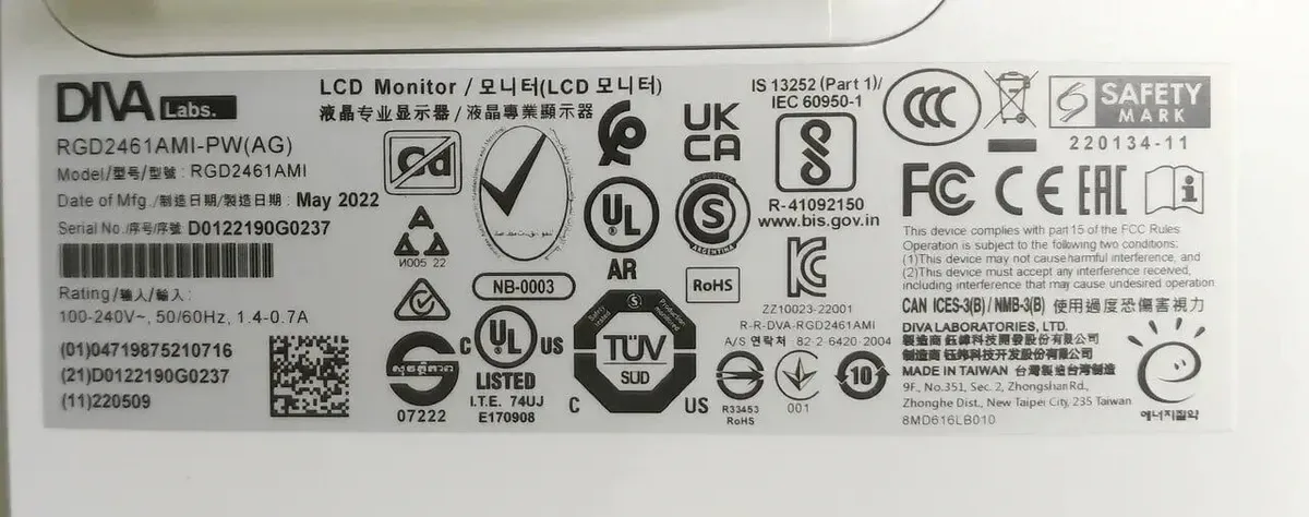 Сенсорний монітор DIVA RGD2461AMI / 24" (1920x1080) IPS Touch / 1x HDMI, 1x DisplayPort, 1x VGA, 1x COM-порт / 2x 1.5W / VESA 100x100 б/в