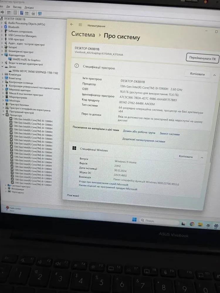 - Модель: Asus Vivobook 17x k3704v