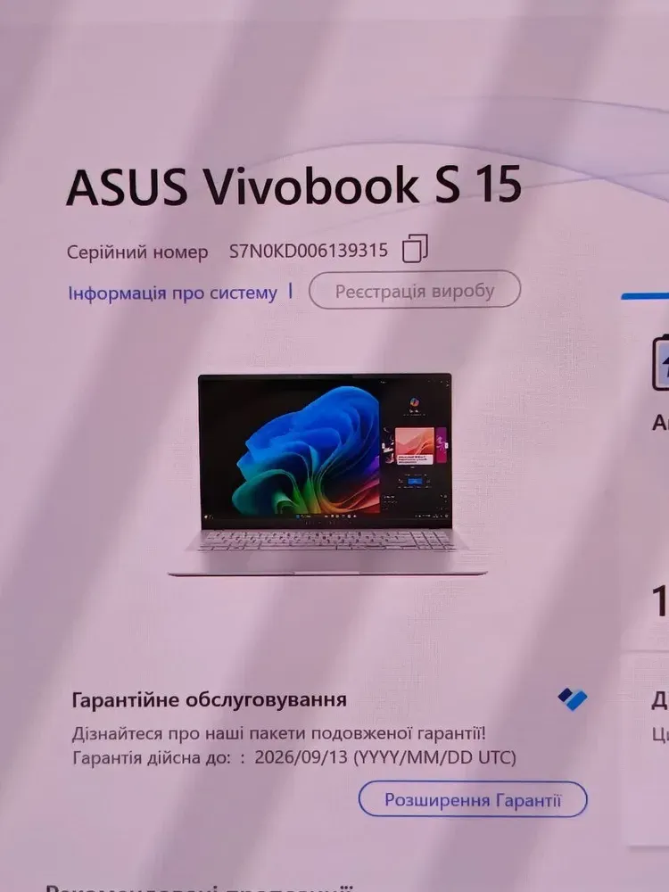 - Комплектація: ноутбук, зарядний пристрій, наклейки на клавіатуру
