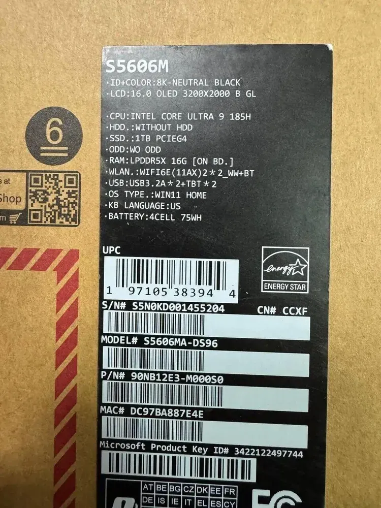 - Модель: Asus Vivobook S 16 (S5606M)