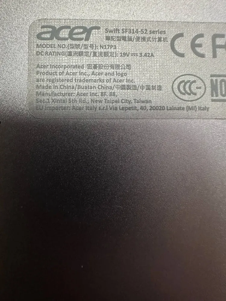 - Модель: Acer Swift 3 SF314-52