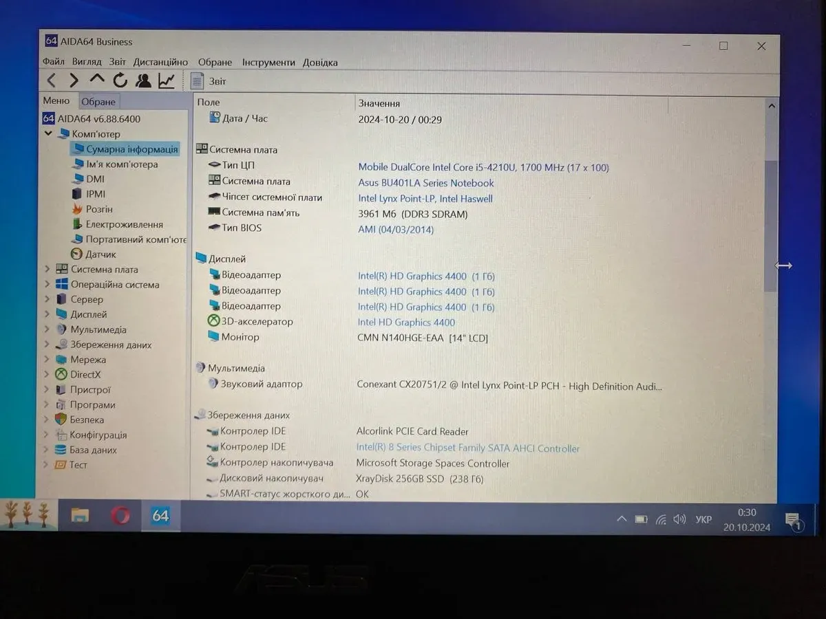 - Графіка: інтегрована Intel HD Graphics 4400 (до 1792 MB з ОЗП)