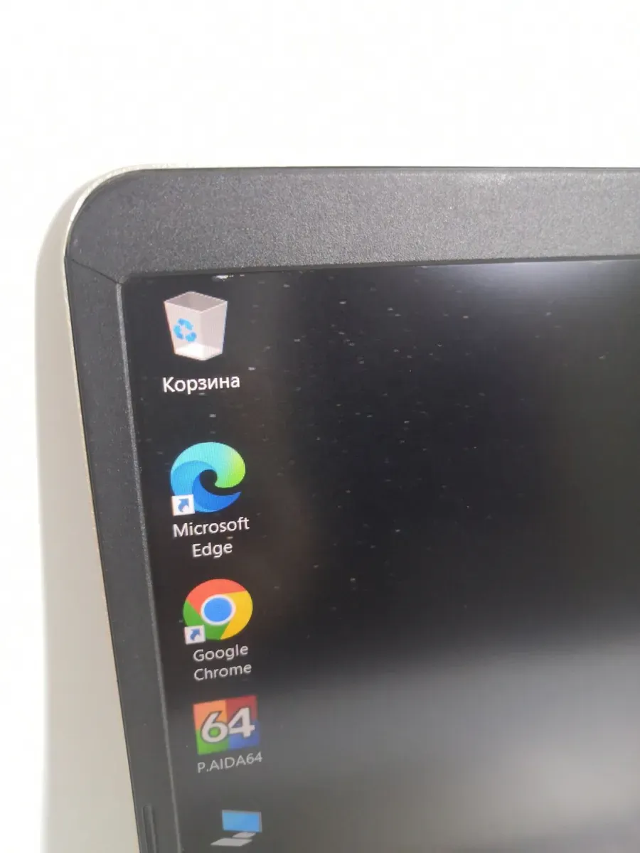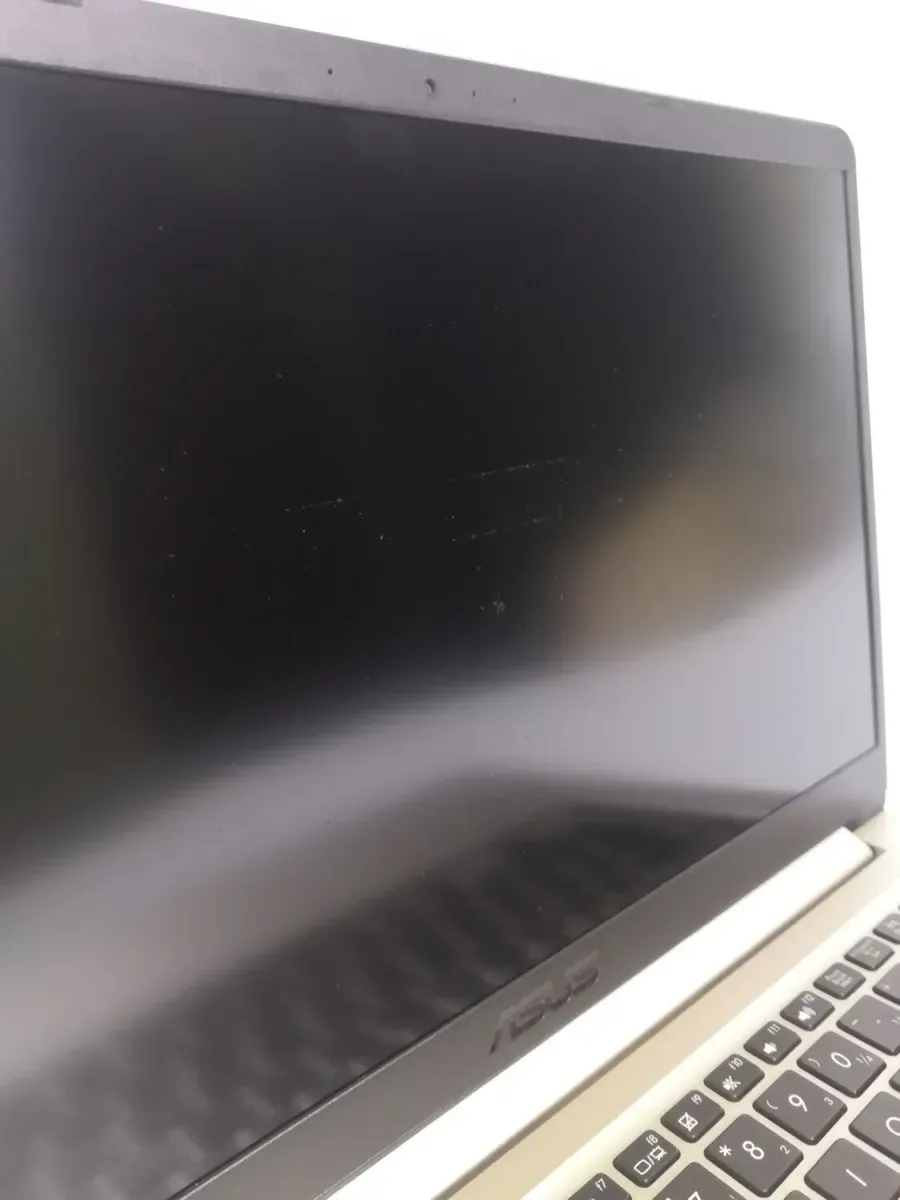 Невеликі вм'ятини і потертості на корпусі. Сліди від клавіатури на екрані. Тріщина рамки і засвітлення екрана - верхній лівий кут