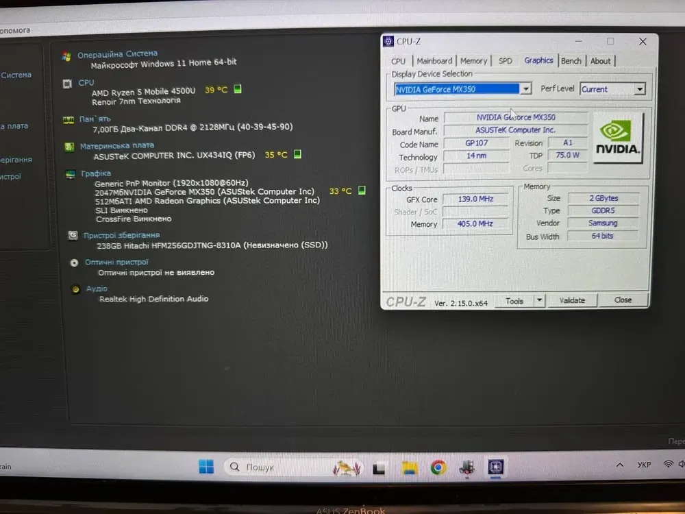 - Графіка: дискретна nVidia GeForce MX350, 2 GB GDDR5, 64-bit
