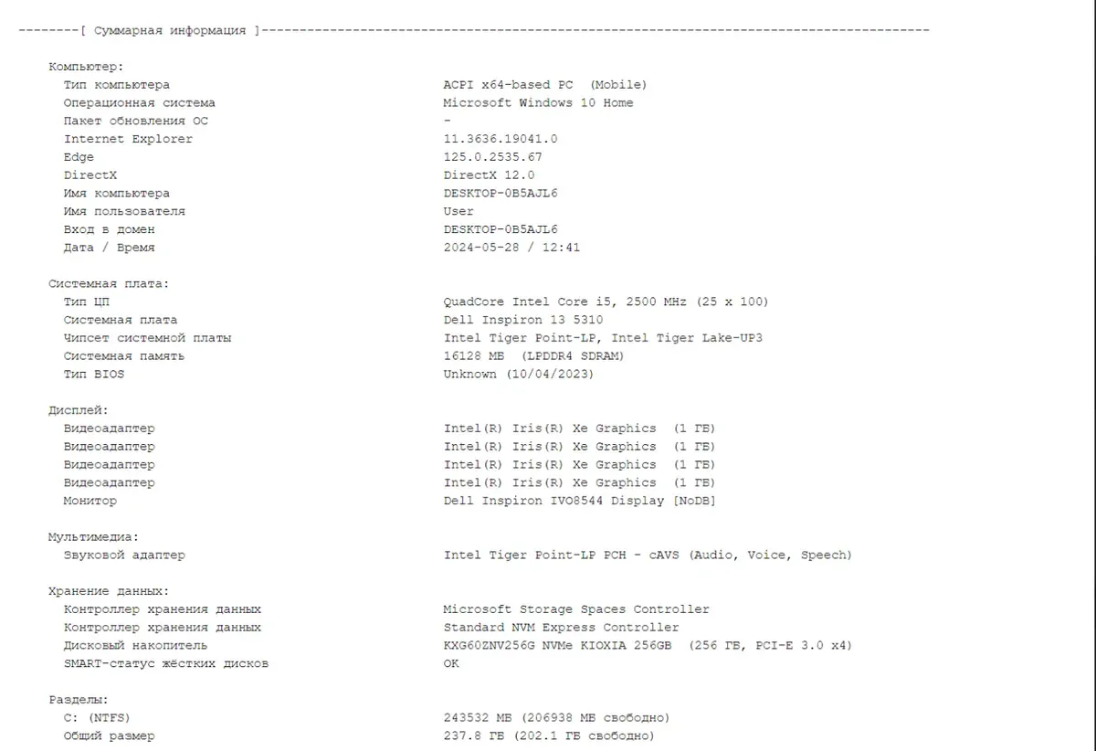 - Постійна пам'ять: 256 GB SSD M.2 NVMe (KIOXIA KXG60ZNV256G)