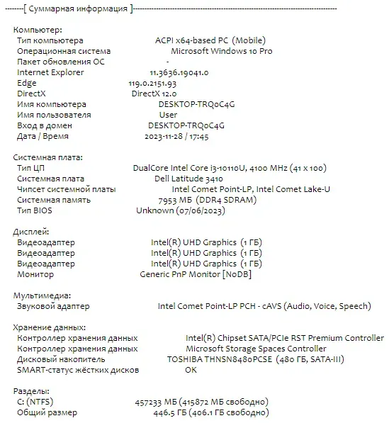 - Модель: Dell Latitude 3410