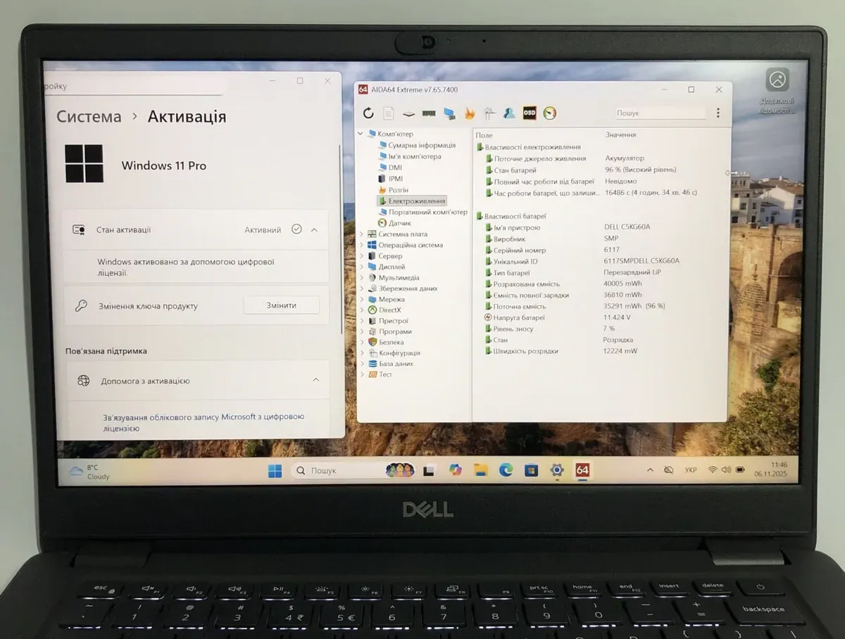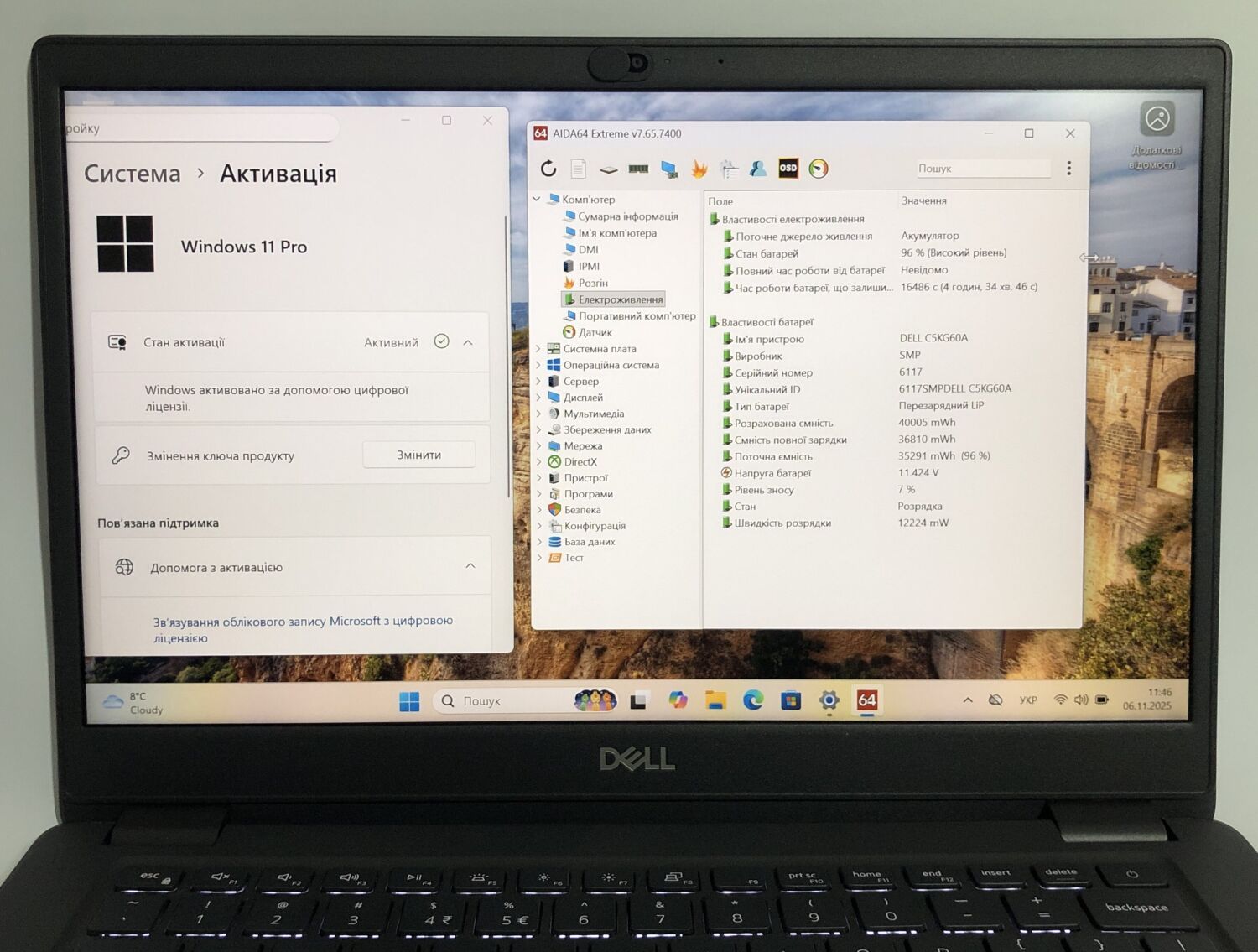 - Комплектація: ноутбук, зарядний пристрій, наклейки на клавіатуру
