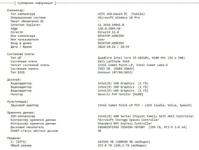 - Операційна система: Windows 10 активована вшитим у BIOS ключем