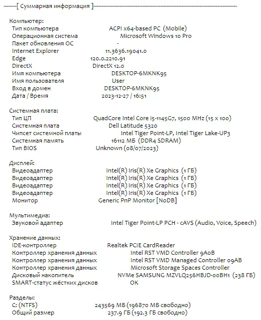 - Модель: Dell Latitude 5320