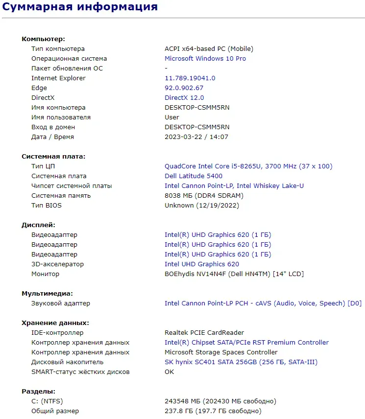 - Постійна пам'ять: 256 GB SSD (SK hynix SC401)