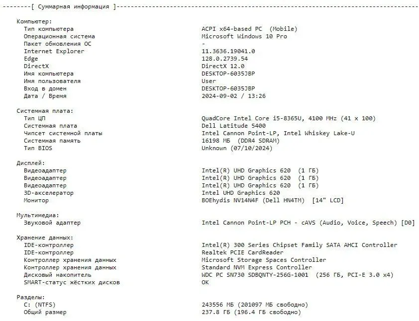 - Постійна пам'ять: 256 GB SSD M.2 NVMe (WDC PC SN730)