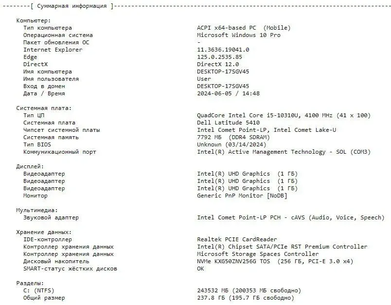 - Процесор: Intel Core i5-10310U (4 (8) ядра по 1.7 - 4.4 GHz), 6 MB Smart Cache