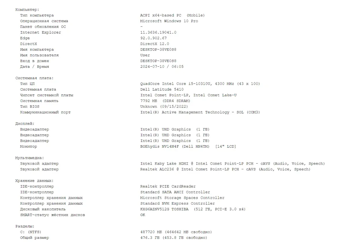 - Процесор: Intel Core i5-10310U (4 (8) ядра по 1.7 - 4.4 GHz), 6 MB Smart Cache