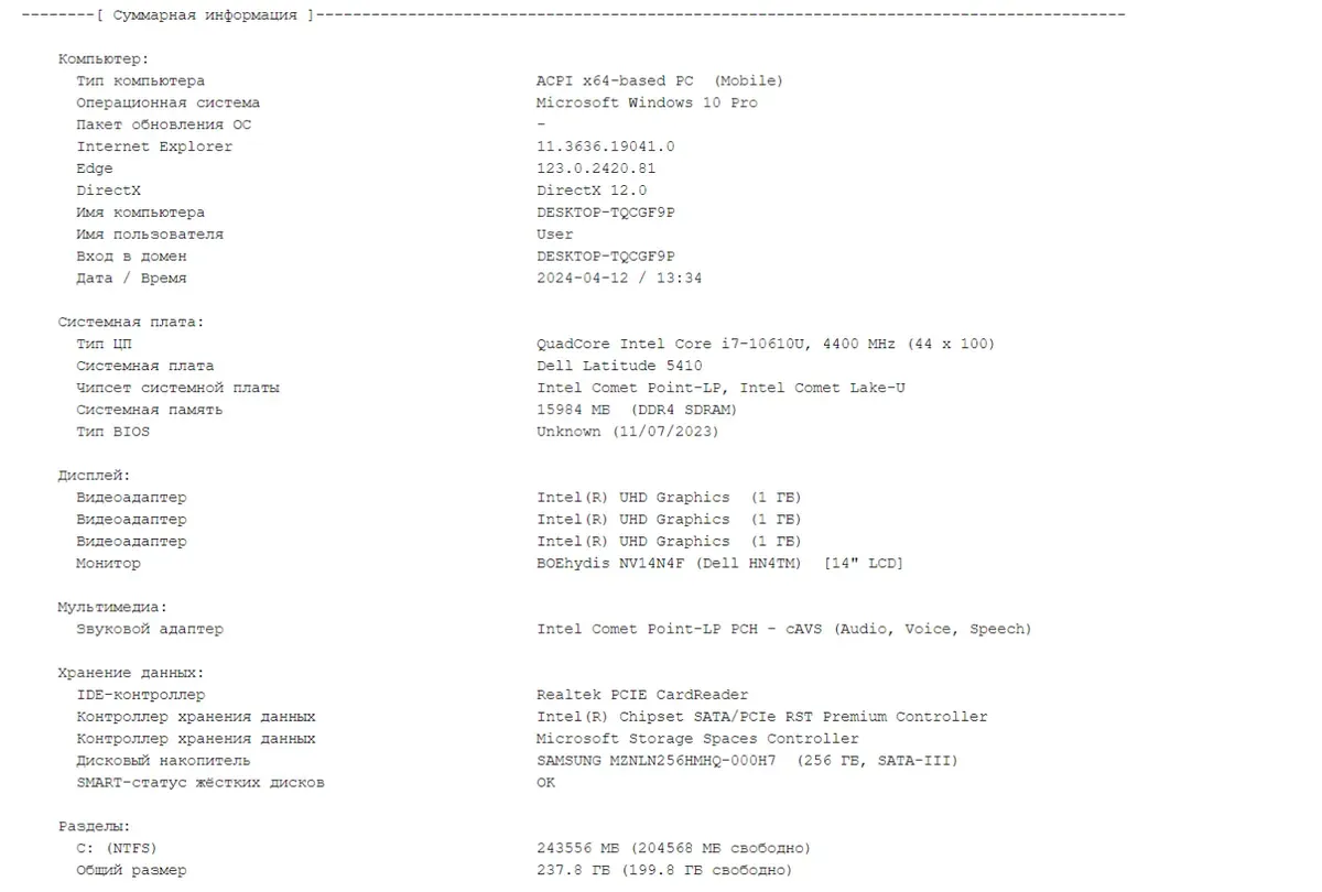 - Операційна система: Windows 10 активована вшитим у BIOS ключем