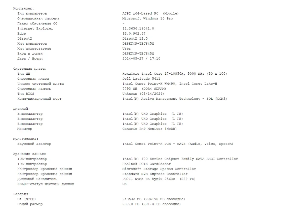 - Модель: Dell Latitude 5411