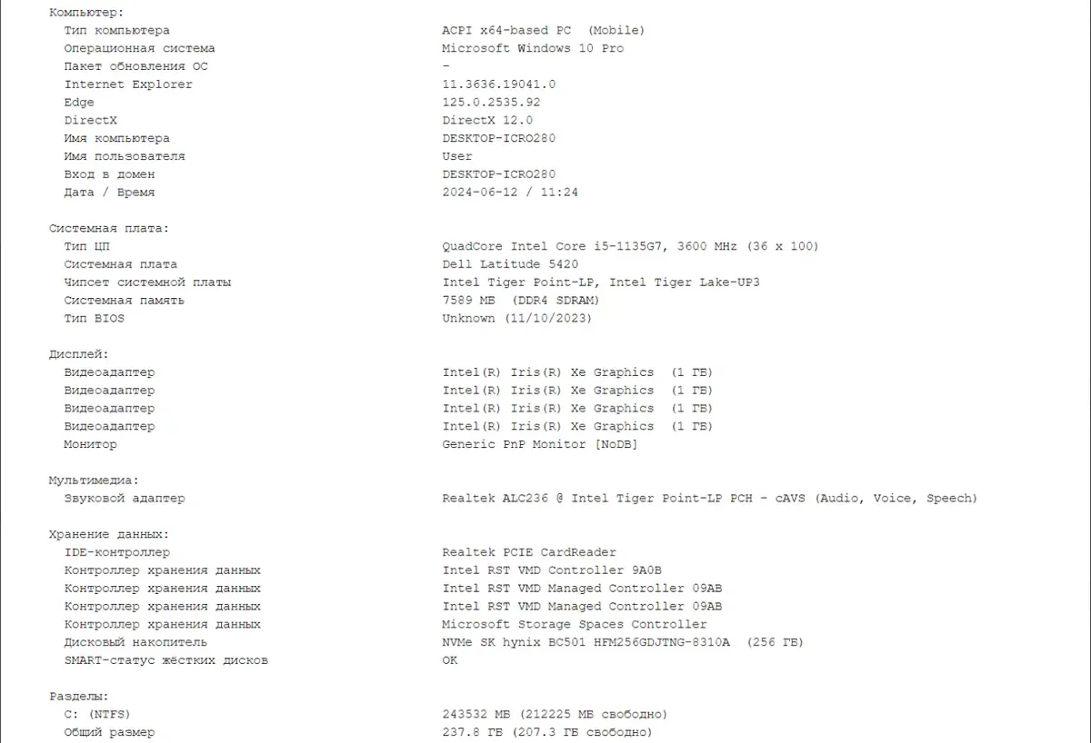 - Постійна пам'ять: 256 GB SSD M.2 NVMe (SK hynix BC501 HFM256GDJTNG-8310A)
