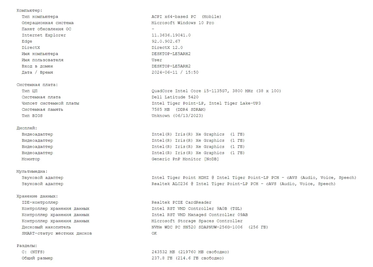 - Модель: Dell Latitude 5420