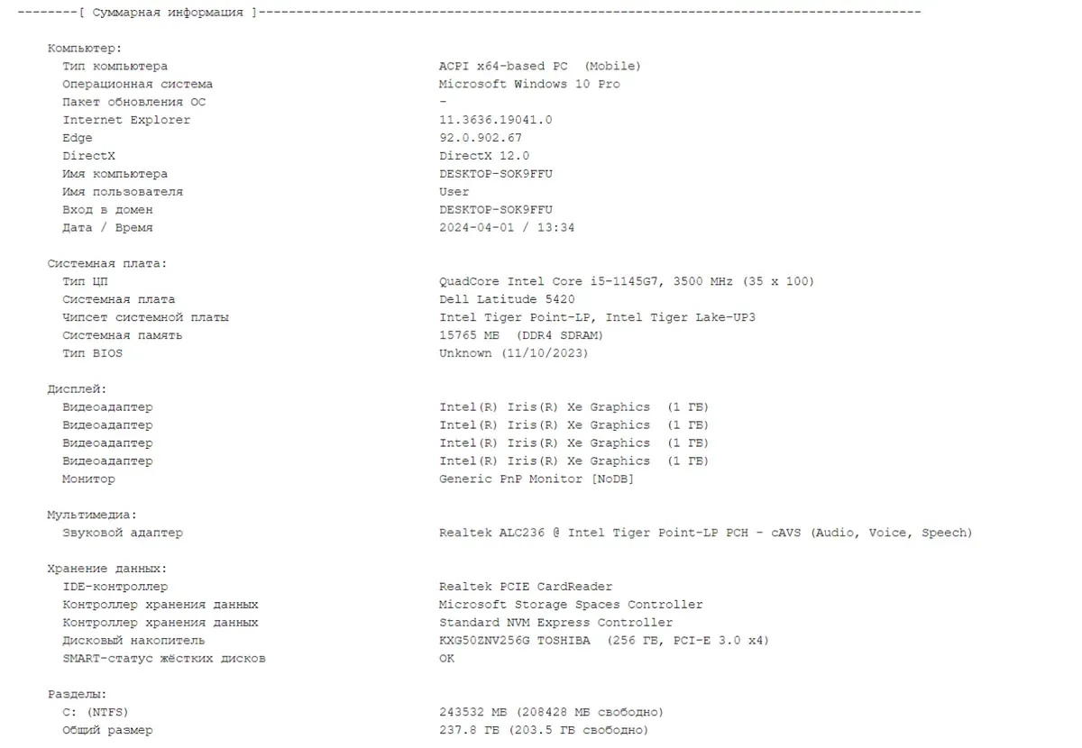 - Модель: Dell Latitude 5420