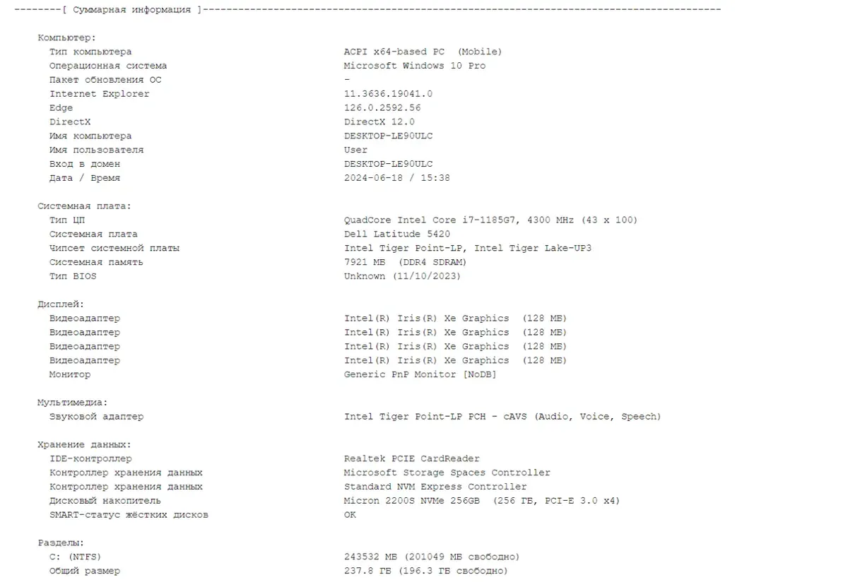 - Модель: Dell Latitude 5420