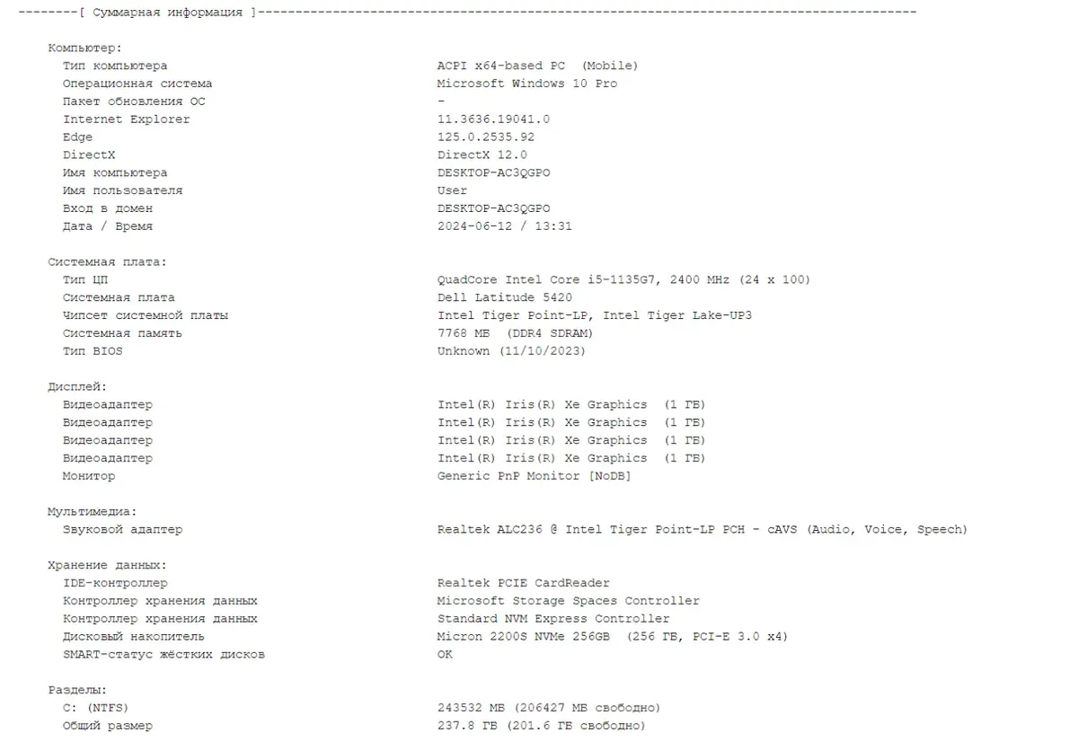 - Модель: Dell Latitude 5420