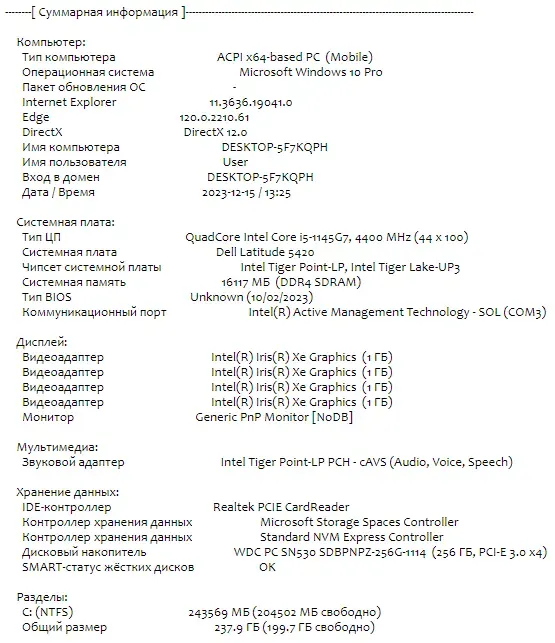 - Модель: Dell Latitude 5420