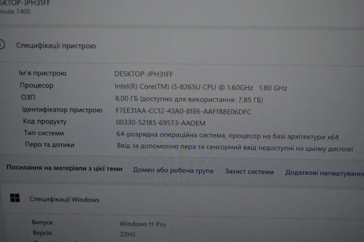 Ультрабук Б-клас Dell Latitude 7400 з екраном 14" (1920x1080) IPS на базі процесора Intel Core i5-8265U та оперативною пам'яттю 8 GB DDR4 для офісної роботи та домашніх завдань