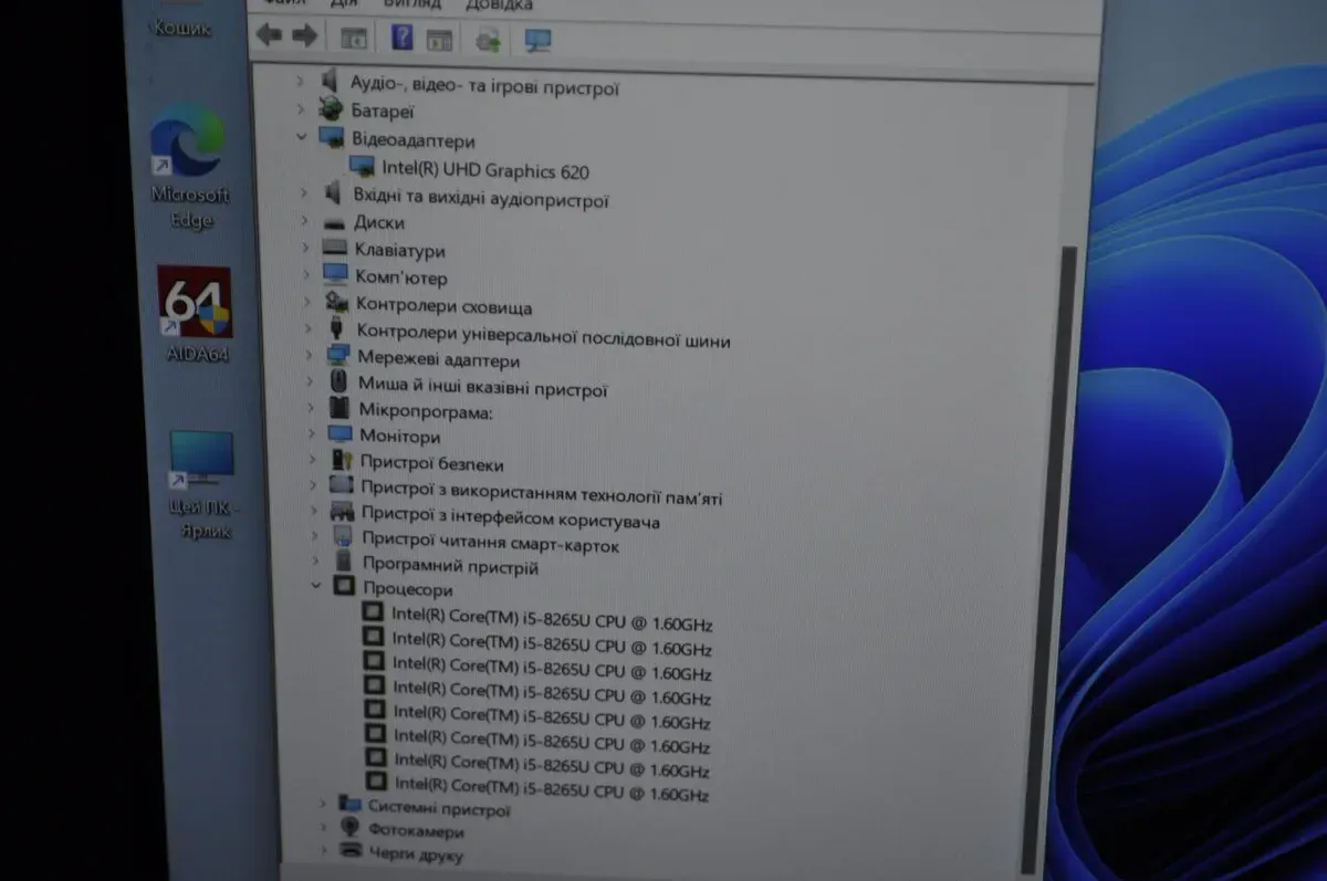 - Процесор: Intel Core i5-8265U (4 (8) ядра по 1.6 - 3.9 GHz), 6 MB Smart Cache