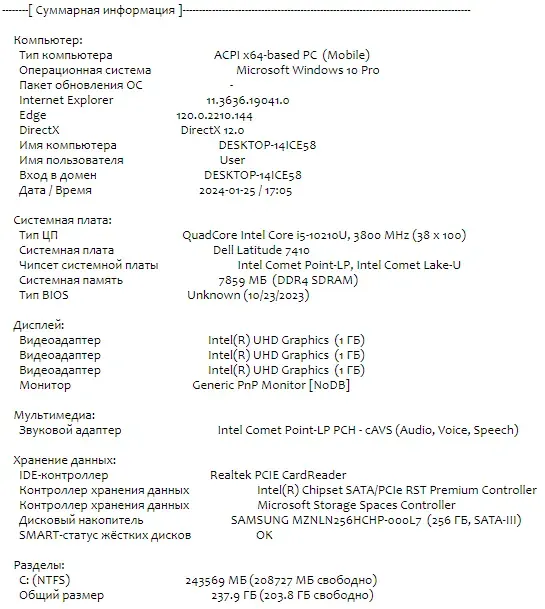 - Процесор: Intel Core i5-10210U (4 (8) ядра по 1.6 - 4.2 GHz), 6 MB Smart Cache