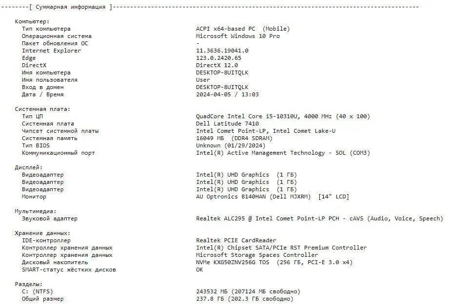 - Процесор: Intel Core i5-10310U (4 (8) ядра по 1.7 - 4.4 GHz), 6 MB Smart Cache
