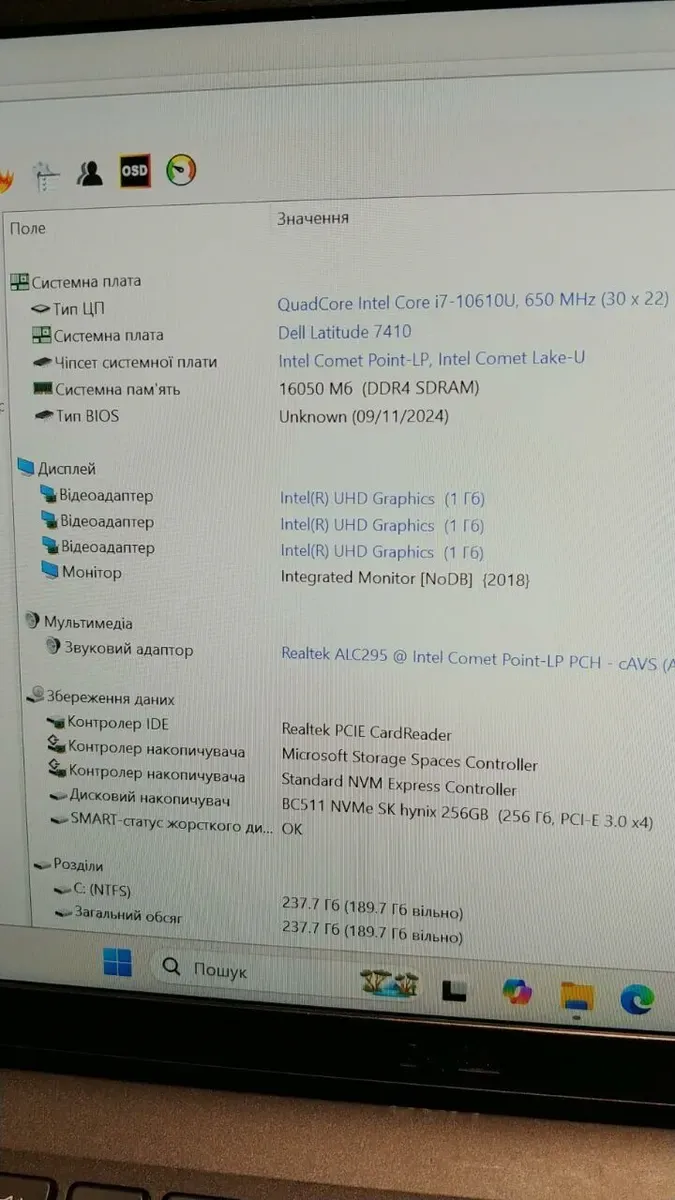 - Операційна система: Windows 10 активована вшитим у BIOS ключем