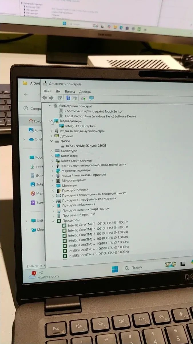 - Постійна пам'ять: 256 GB SSD M.2 NVMe (Toshiba KBG40ZNS256G)