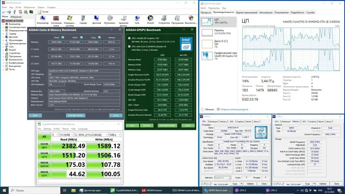 - Процесор: Intel Core i5-6440HQ (4 ядра по 2.6 - 3.5 GHz); Cache Memory 6 MB