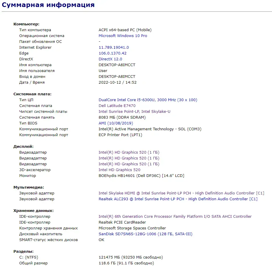 - Модель: Dell Latitude E7470