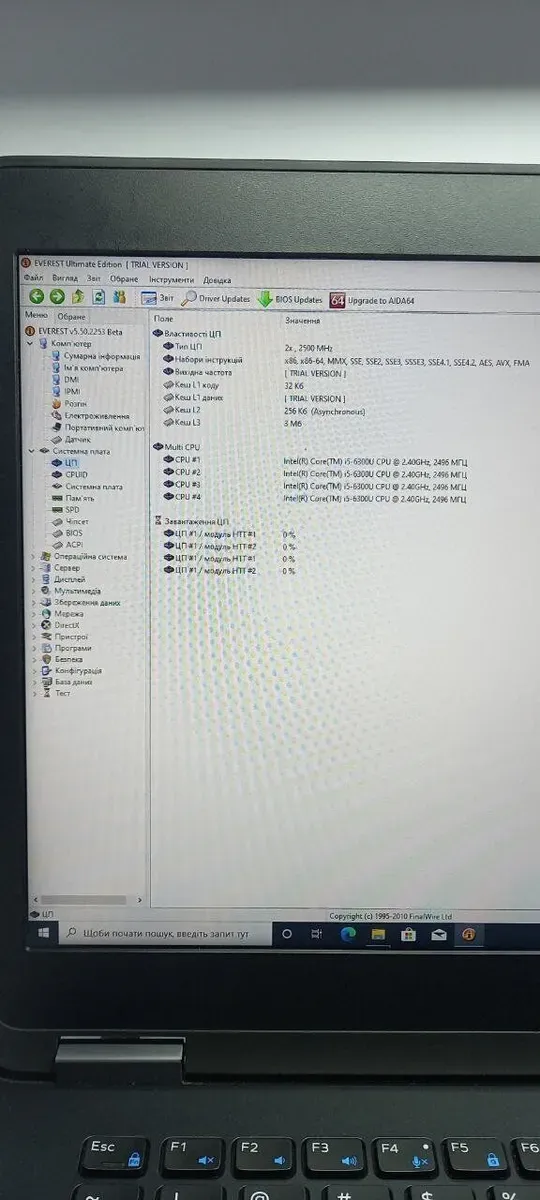- Процесор: Intel Core i5-6300U (2 (4) ядра по 2.4 - 3.0 GHz), 3 MB Smart Cache