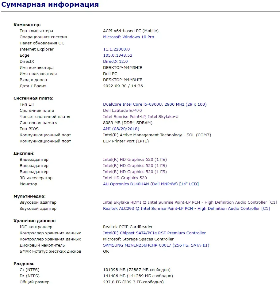 - Процесор: Intel Core i5-6300U (2 (4) ядра по 2.4 - 3.0 GHz), 3 MB Smart Cache