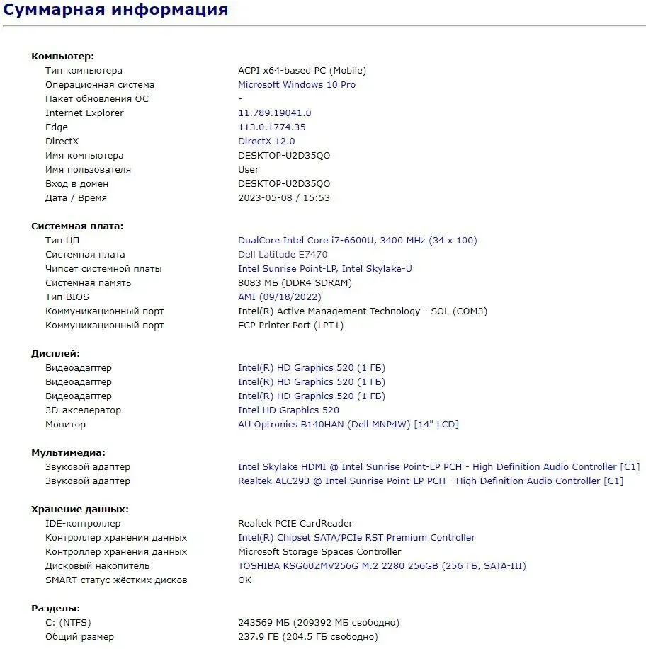 - Постійна пам'ять: 256 GB SSD M.2 (Toshiba KSG60ZMV256G)
