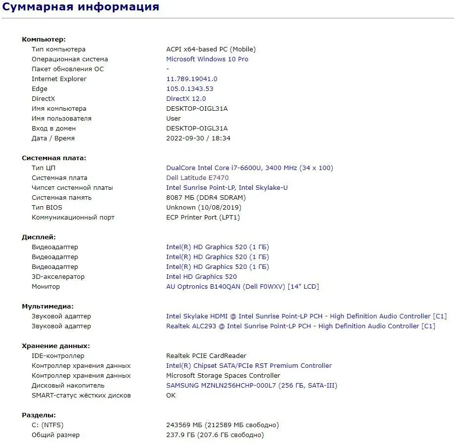- Операційна система: Windows 10 активована вшитим в BIOS ключем