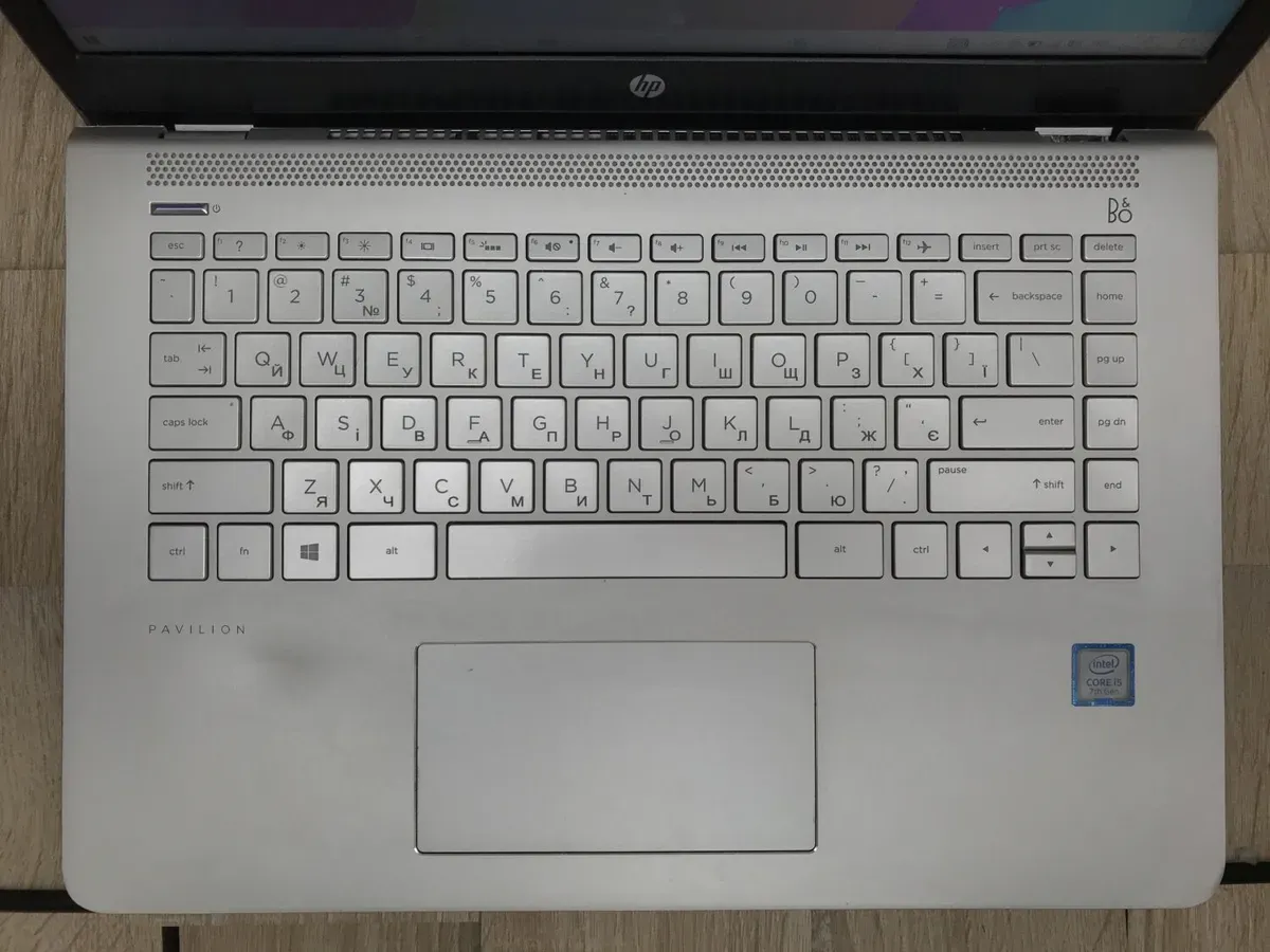 - Стан: б/в (клас Б: заповіти матриці екрана; вм'ятини зліва від Тачпада і на верхній кришці; подряпини по корпусу; відсутні гумові ніжки на сервісній кришці));