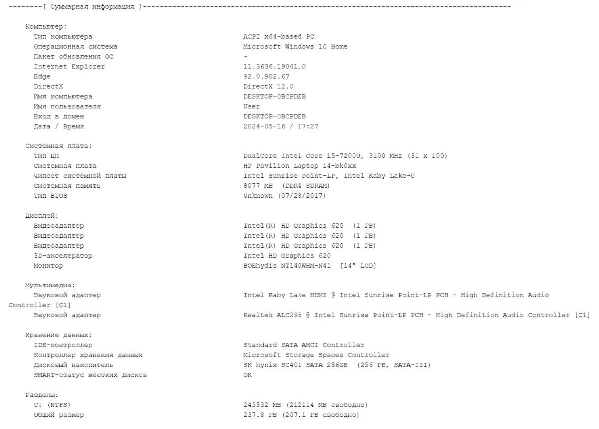 - Постійна пам'ять: 256 GB SSD (SK Hynix SC401)