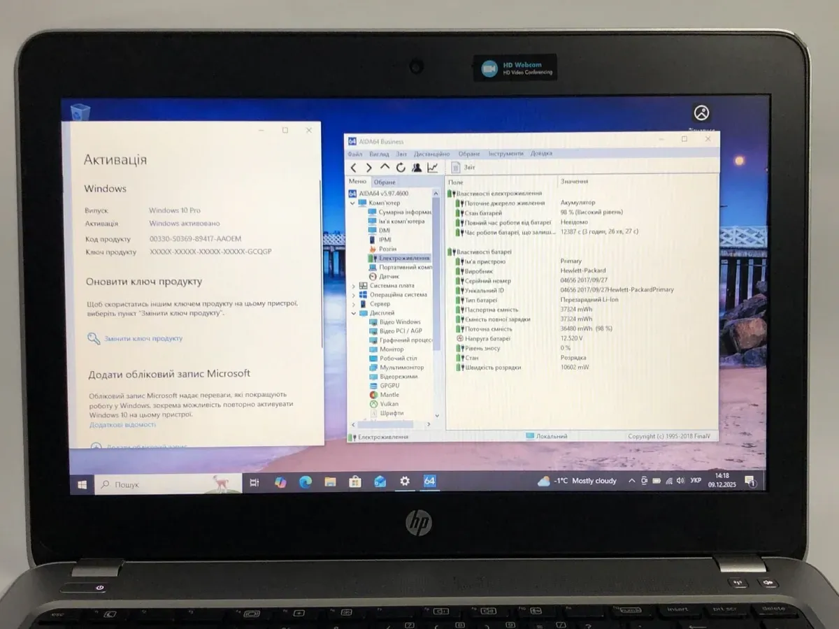 - Комплектація: ноутбук, зарядний пристрій, наклейки на клавіатуру