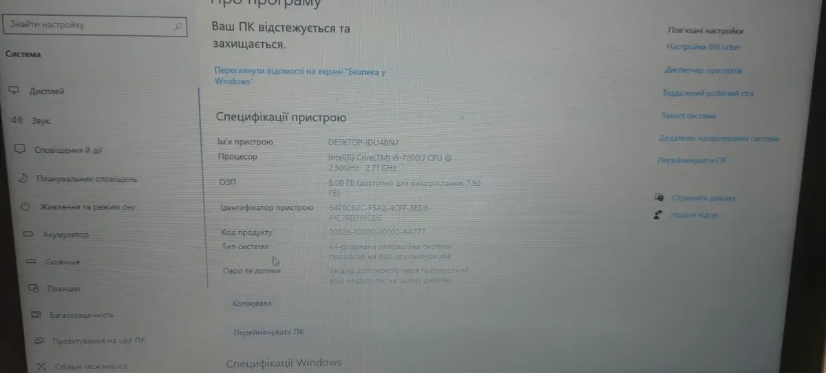 - Процесор: Intel Core i5-7200U (2 (4) ядра по 2.5 - 3.1 GHz), 3 MB Cache