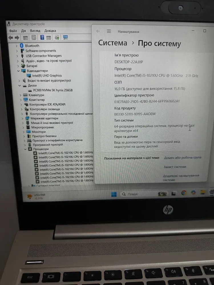 Процесор:Intel Core i5-10210U
