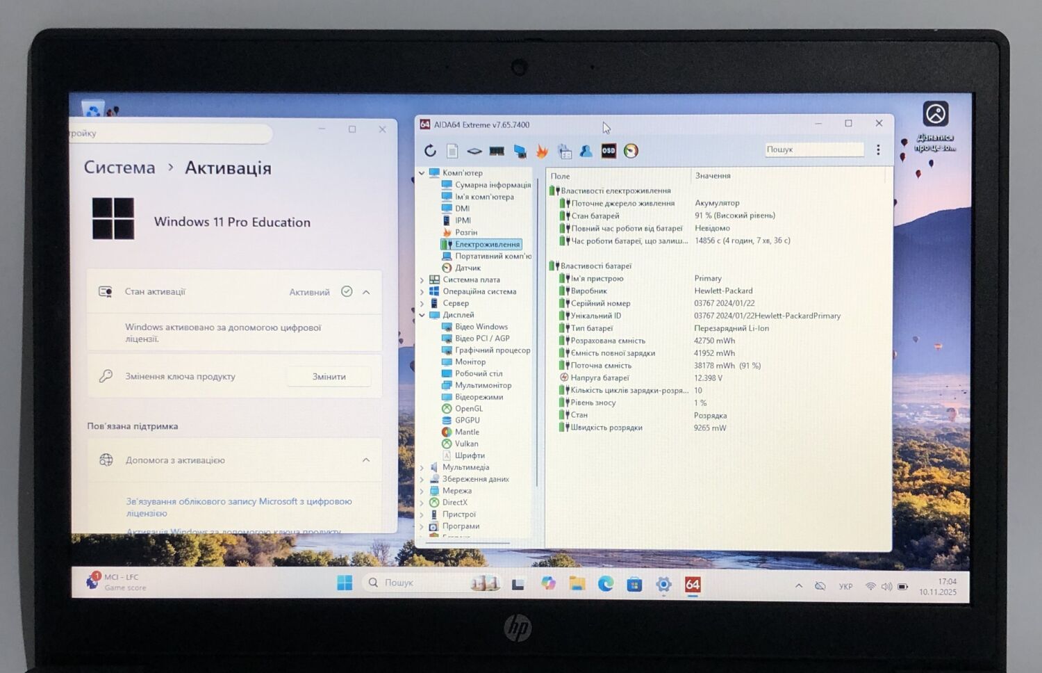 - Комплектація: ноутбук, зарядний пристрій, наклейки на клавіатуру
