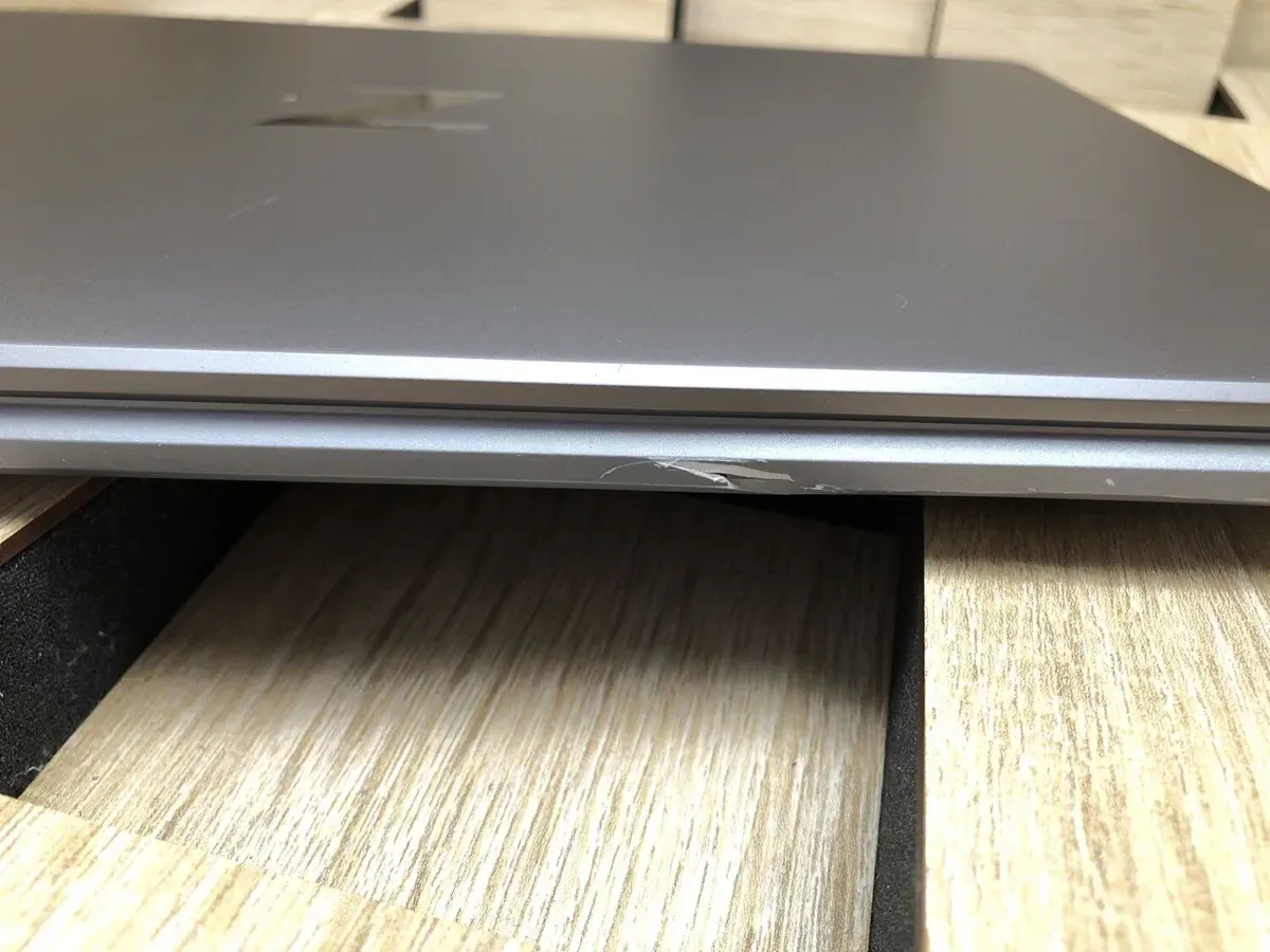- Вм'ятини на верхній кришці. Потертий правий верхній кут верхньої кришки. Пошкоджено правий кут корпусу знизу. пошкодження на накладці петлі