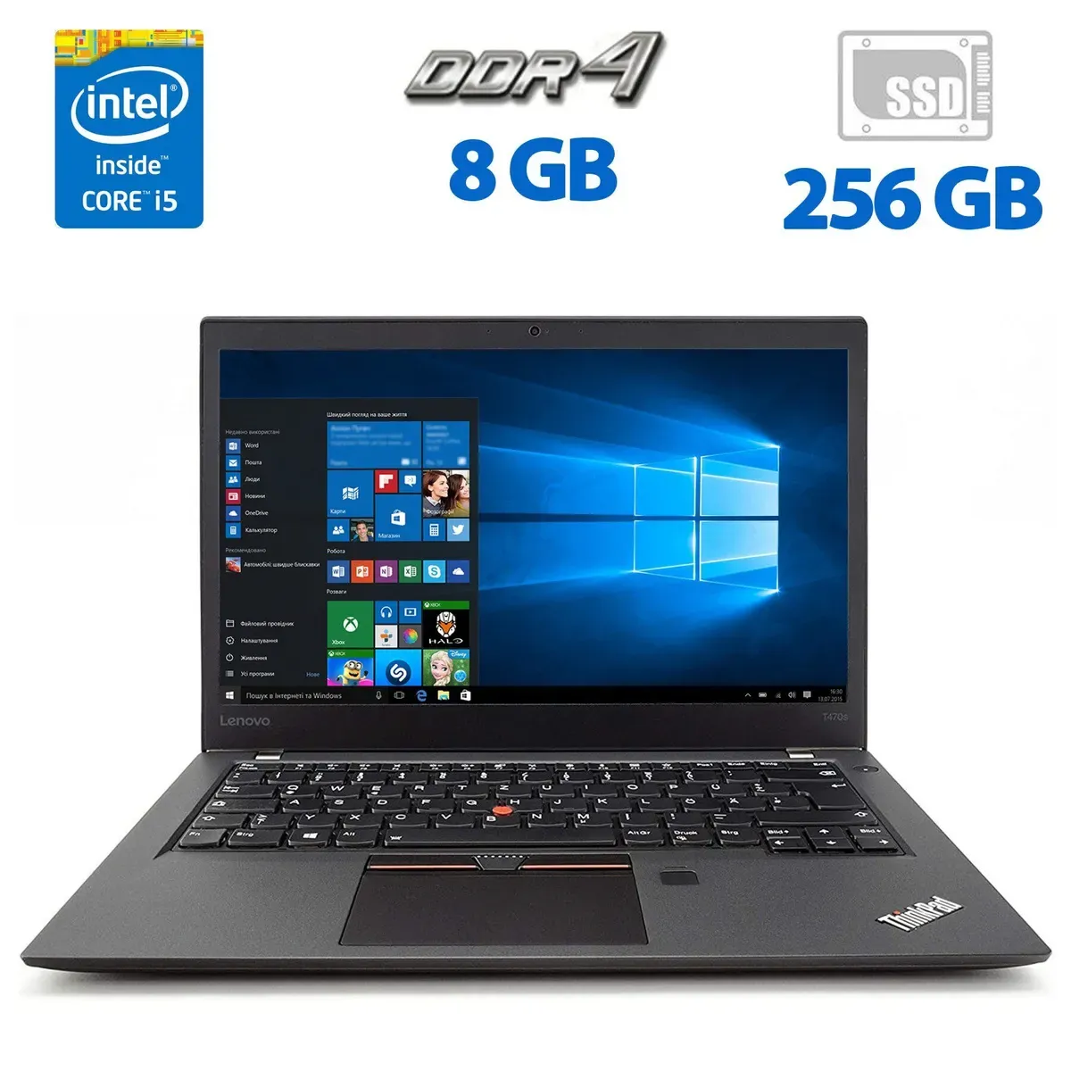 Ультрабук Б-клас Lenovo ThinkPad T470s з екраном 14" (1366x768) TN на базі процесора Intel Core i5-6300U та оперативною пам'яттю 8 GB DDR4 для офісної роботи та домашніх завдань