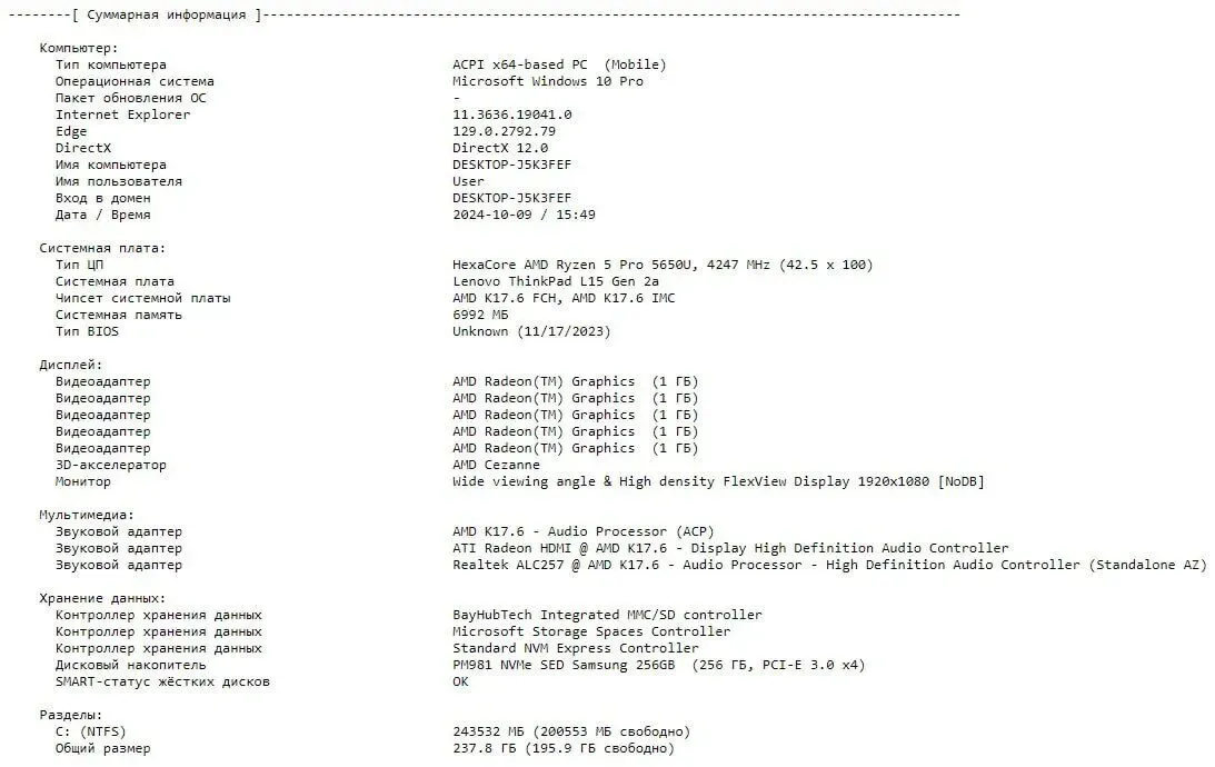 - Процесор: AMD Ryzen 5 Pro 5650U (6 (12) ядра по 2.3 - 4.2 GHz), 16MB Cache