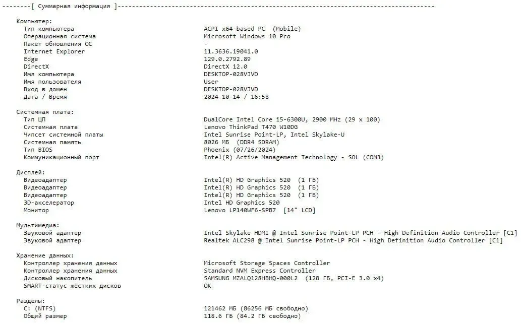 - Постійна пам'ять: 128 GB SSD (Samsung MZALQ128HBHQ-000L2)