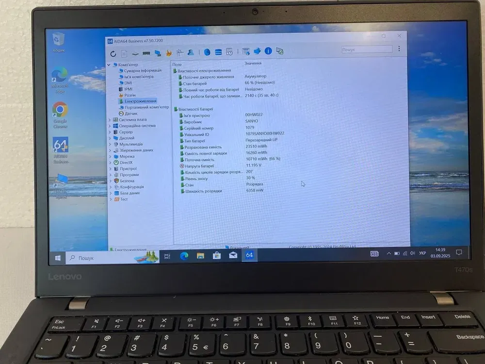 - Батарея: щонайменше 1.5-2 години в режимі звичайного навантаження. Рівень зносу - 30%