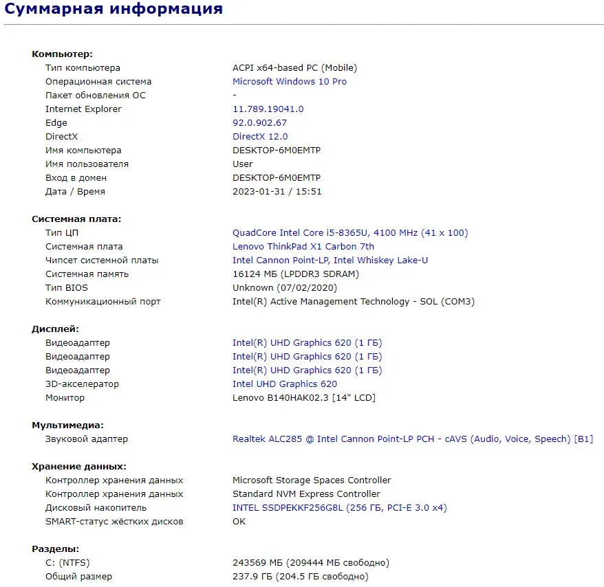 - Модель: Lenovo ThinkPad X1 Carbon (7th Gen)